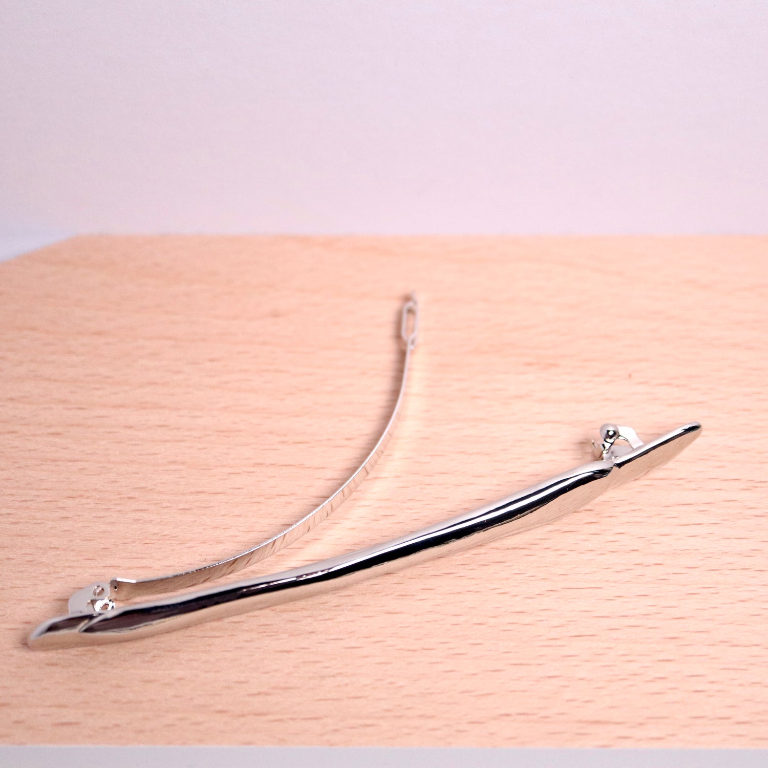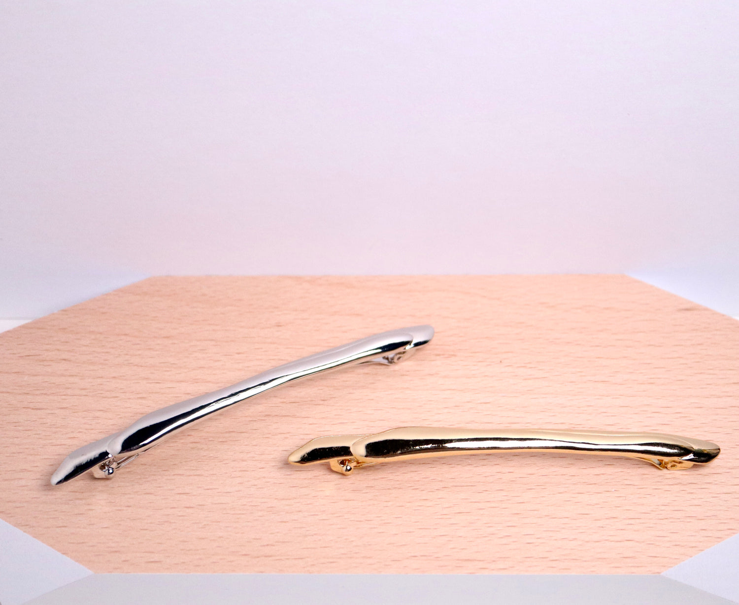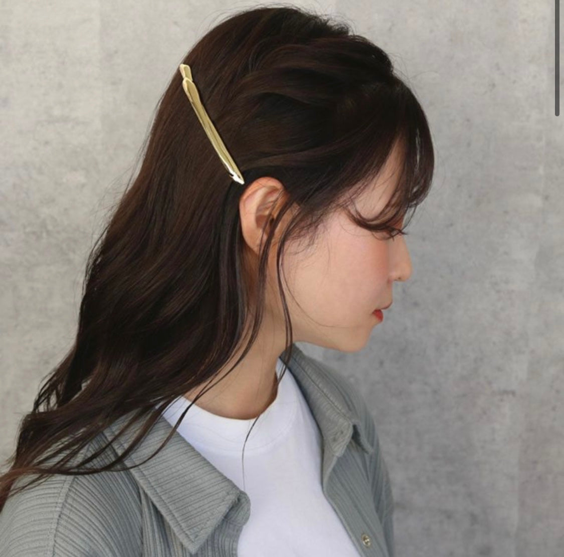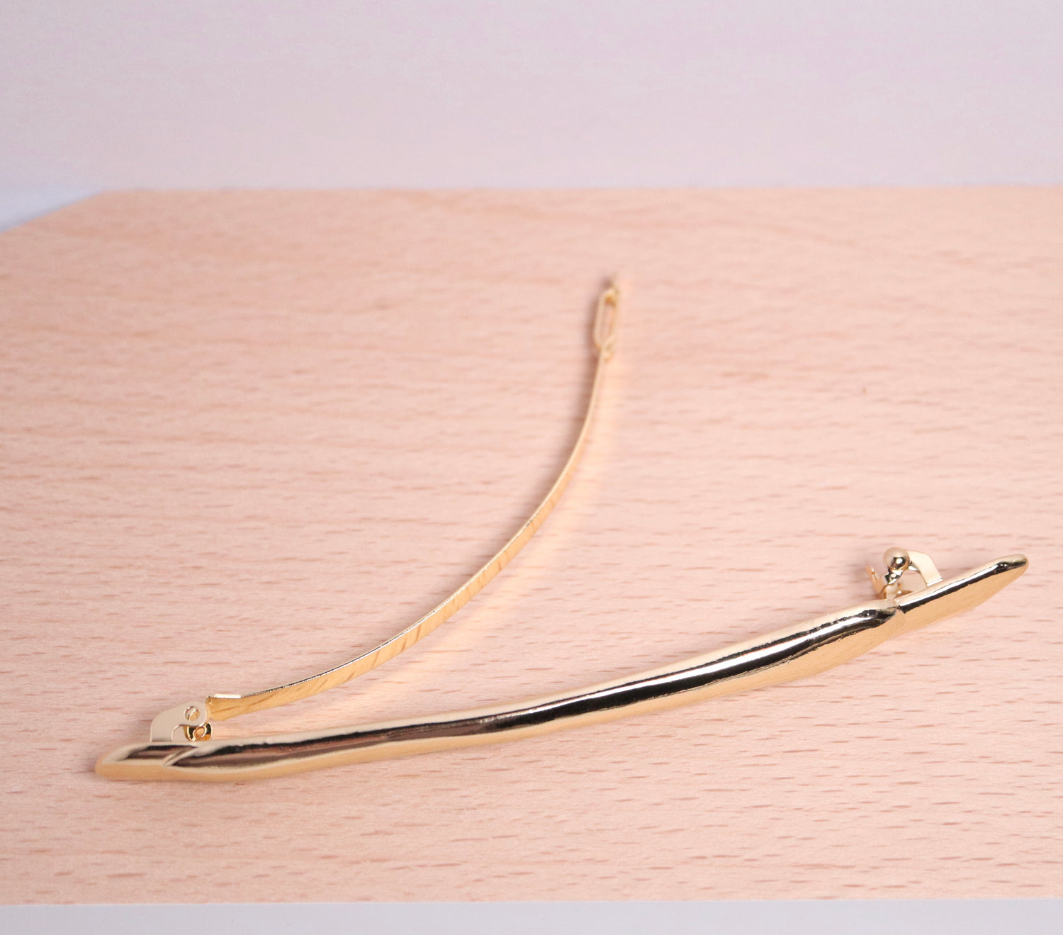 使用金屬材料的時尚設計髮飾。有光澤的質感和圓潤的長線條,營造出柔和的感覺。