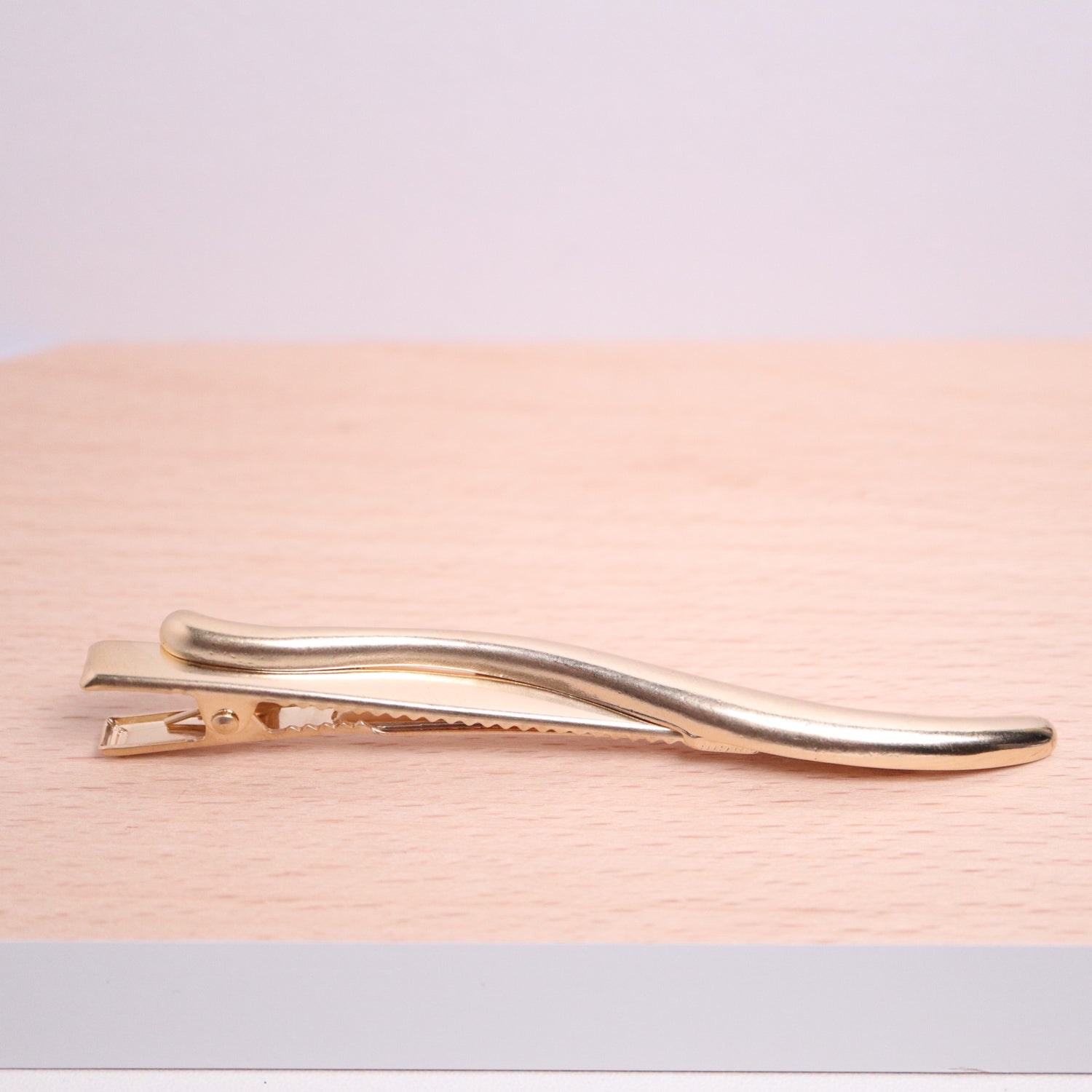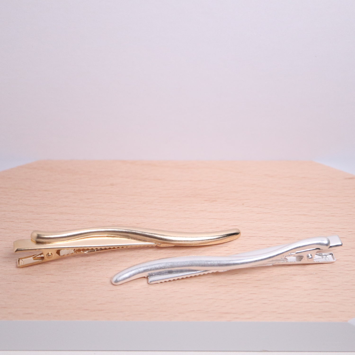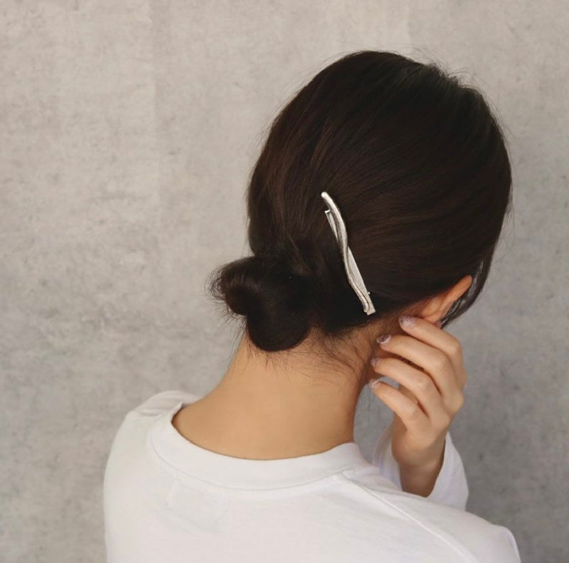 使用金屬材料的時尚設計髮飾。有光澤的質感和圓潤的S線條,營造出柔和的感覺。