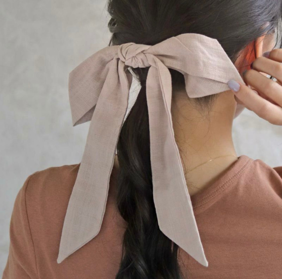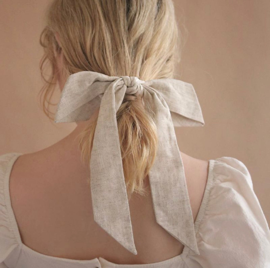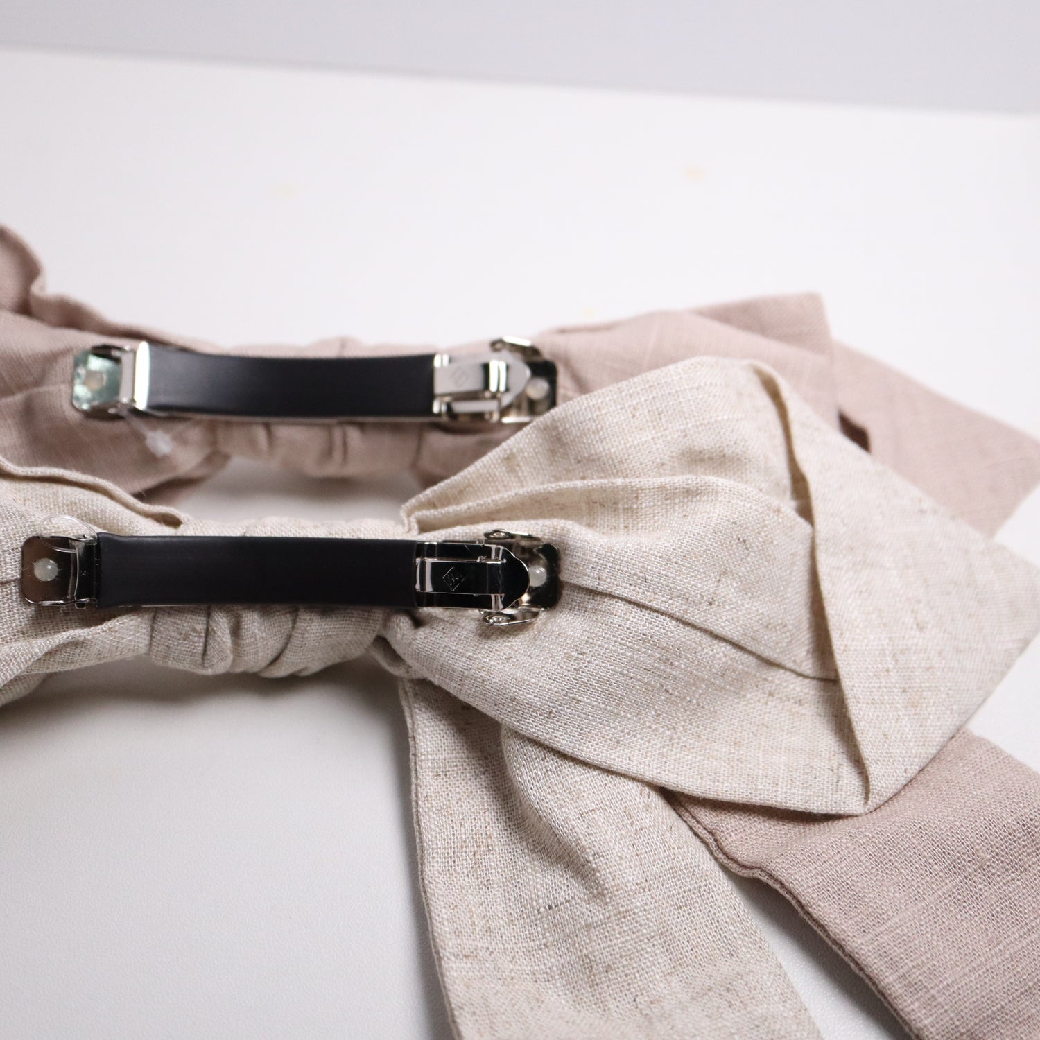 麻布材質的輕型大蝴蝶結髮夾,有即時減齡的視覺效果。