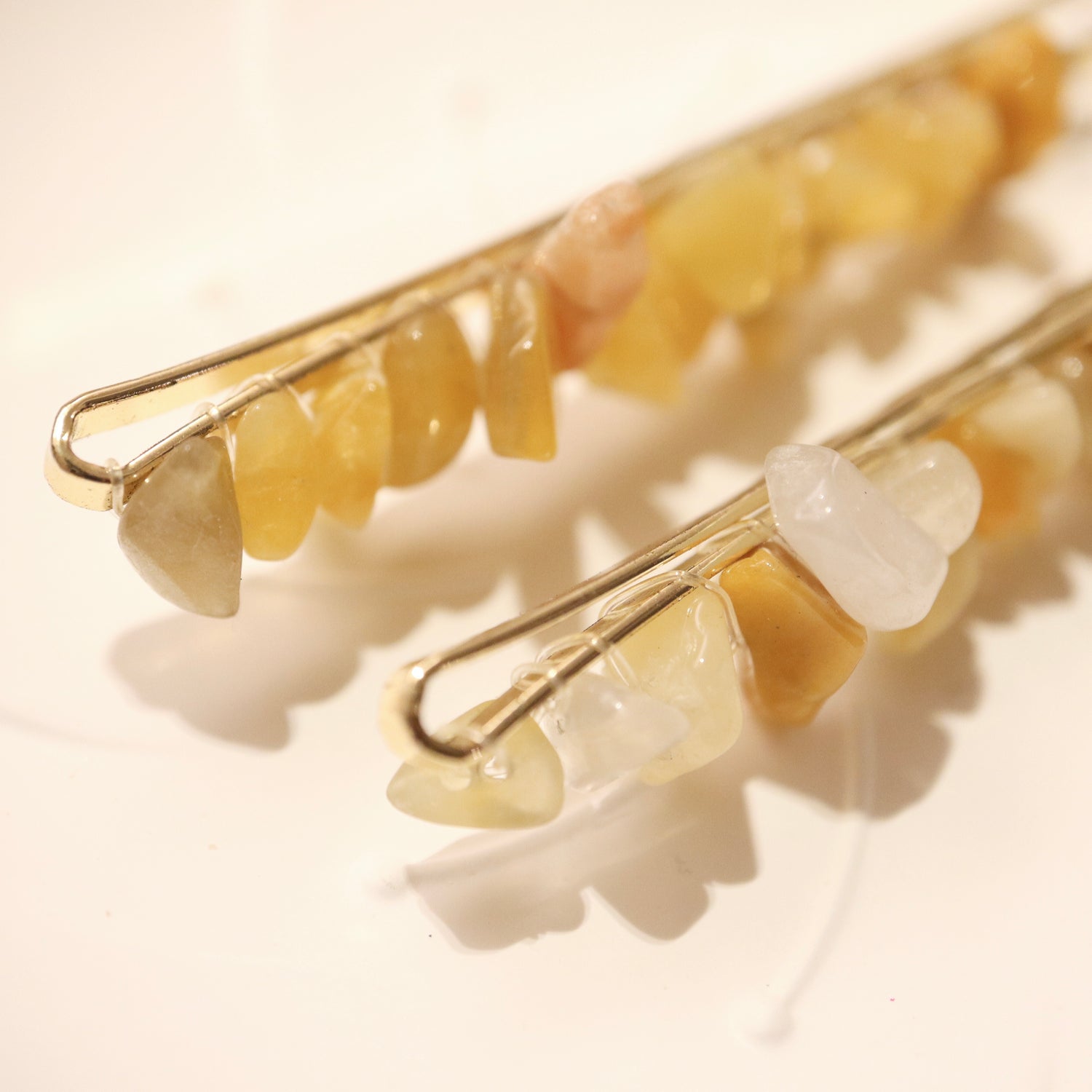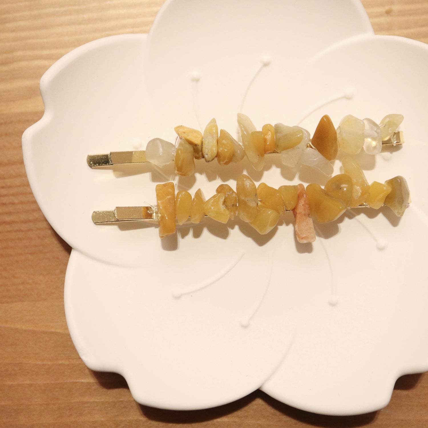 美國L.E 黃色不規則石卵髮夾套裝